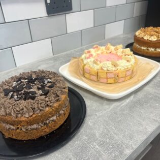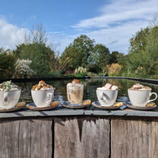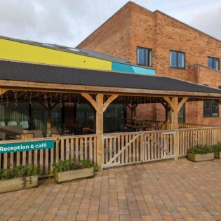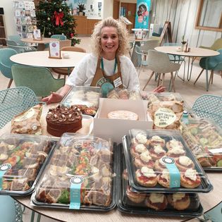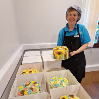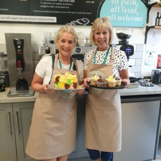 We’re open every day with all our cakes made fresh by our hospice cooks. There’s plenty of free parking, you can sit inside or out under our covered and heated canopy. And if you need a stroll after that slice of cake, there’s a children’s trail and woodland walk right on hand.