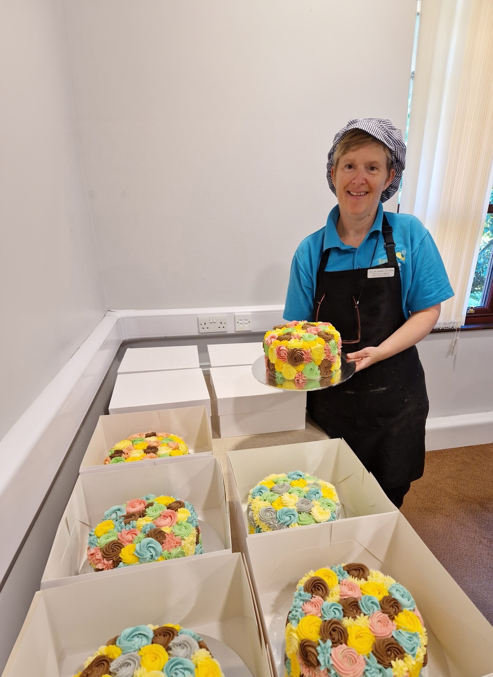 We’re open every day with all our cakes made fresh by our hospice cooks. There’s plenty of free parking, you can sit inside or out under our covered and heated canopy. And if you need a stroll after that slice of cake, there’s a children’s trail and woodland walk right on hand.